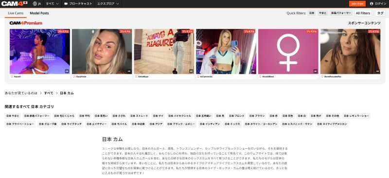 CAM4は世界中のアマチュア配信者が集まるライブチャットサービスで、自由度の高さが群を抜いているサイトです。
