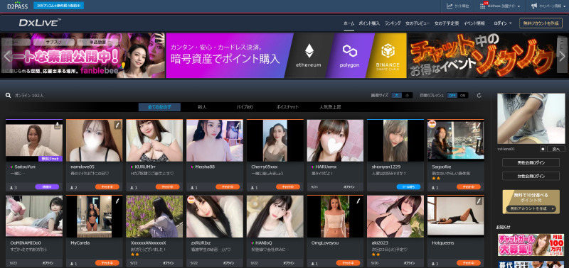DXLIVEは、日本国内でトップクラスの会員数を誇る、無修正ライブチャットサイトです。