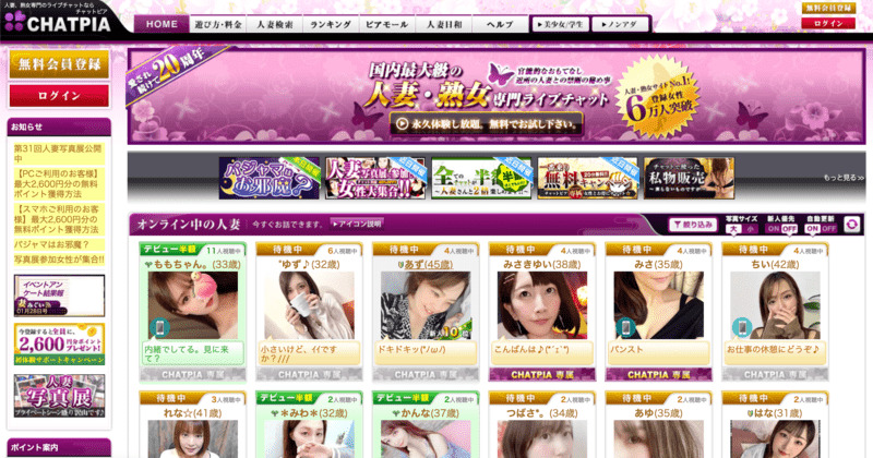 特に30代以上の女性が多く在籍しており、若い世代とは異なる雰囲気やリアルな会話を求めるユーザーに適しています。